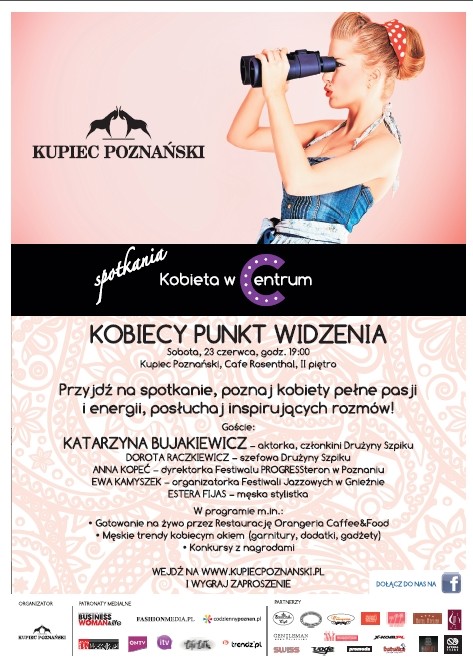23 czerwca odbędzie się ostatnie przed przerwą wakacyjną Spotkanie w Kupcu Poznańskim z cyklu „Kobieta w Centrum”. W tym miesiącu gościem będzie m.in. Katarzyna Bujakiewicz.