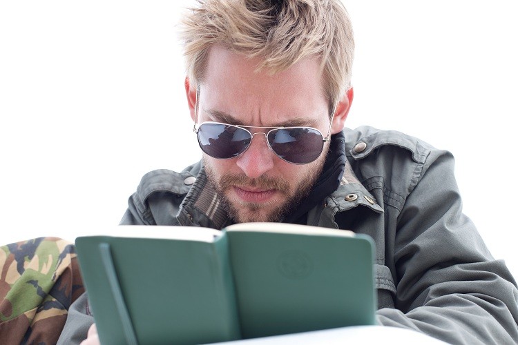 Na zdjęciu Tomasz Grzywaczewski z notatnikiem Quo Vadis.
